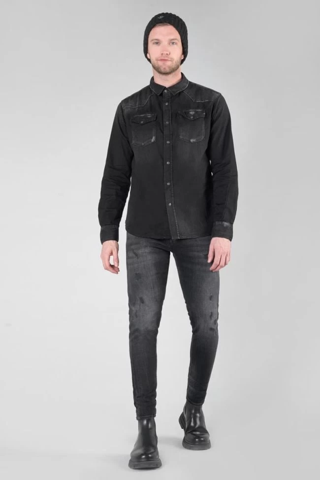 Cette chemise Juanito en jeans noir délavé est très tendance avec ses deux poches poitrine à rabat, son délavage et ses petites abrasions. Pour plus de confort, la fermeture est à boutons pression tout comme les poignets.