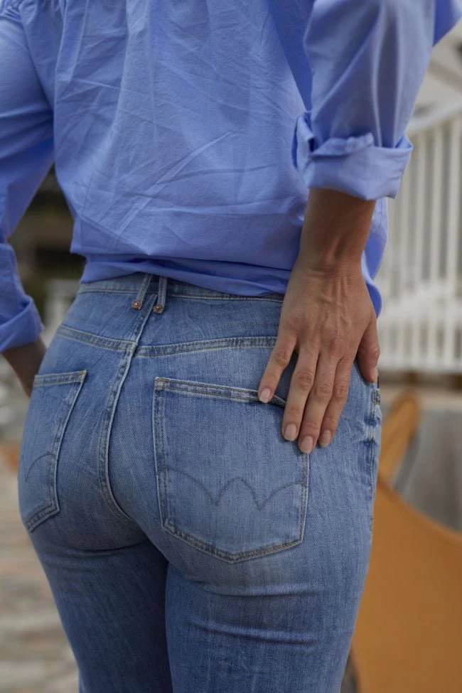 Grâce à sa coupe Mom, le 400/18 mettra en valeur vos courbes avec son effet gainant au niveau de la taille et son bloc haut habillé d’un double boutonnage visible. Sa toile peu extensible authentique l’effet vintage met en valeur le savoir-faire de nos artisans jeaners. Ses jambes droites et ses chevilles décollées s’accompagnent d’une longueur 7/8ème pour une allure stylée.