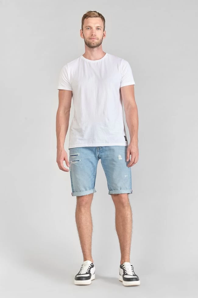 Ce bermuda Laredo est idéal pour la saison estivale avec son jeans bleu clair délavé. Ses abrasions et trous réparés, ses revers au niveau des genoux et sa poche arrière retournée apportent plus de style à la pièce.