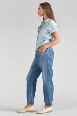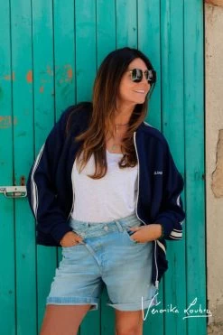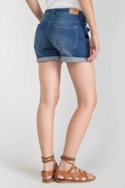 Ce bermuda Mary en jeans bleu est la nouvelle pièce très tendance et originale avec sa fermeture boutonnée asymétrique. Sa coupe qui arrive au niveau du genou, ses abrasions et ses trous réparés apportent encore plus de style à la pièce.