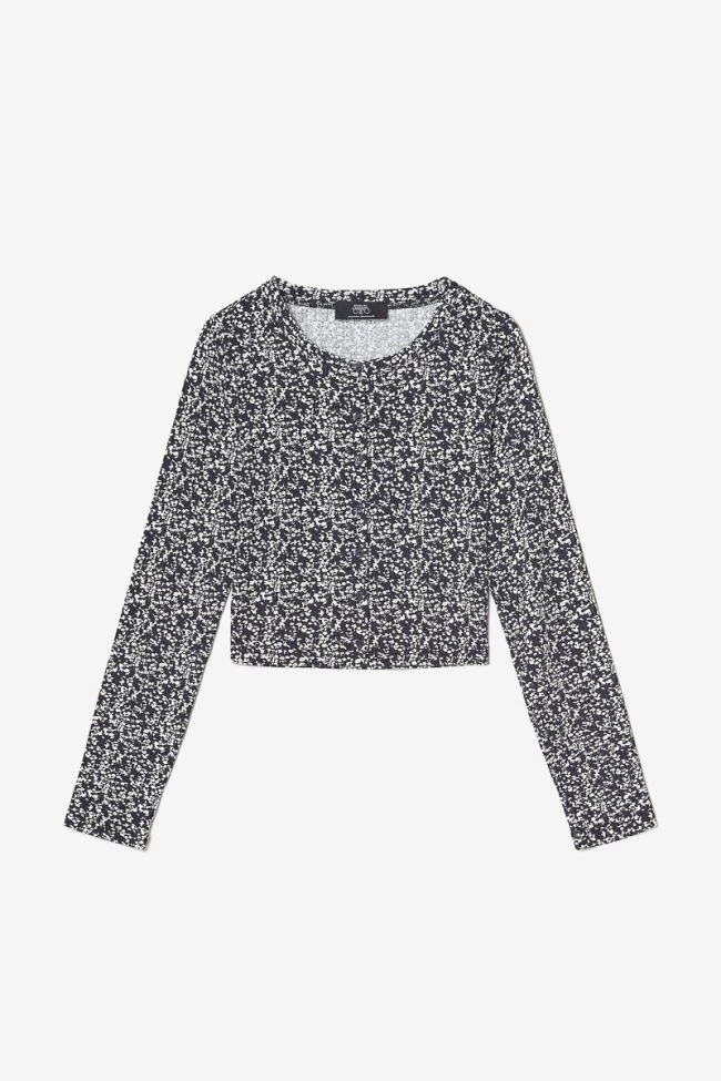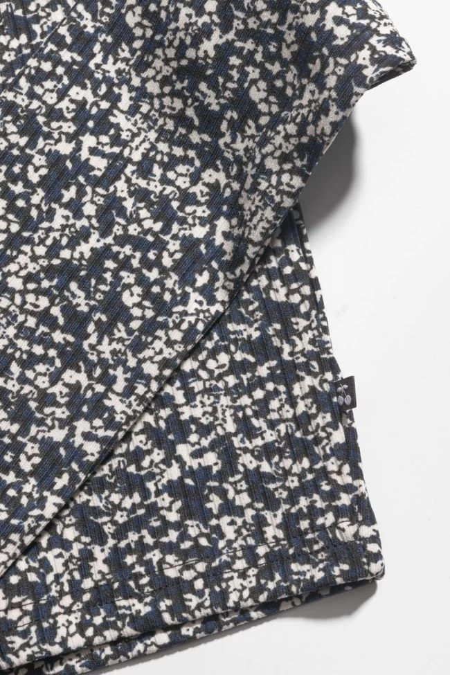 Cardigan Alvagi légèrement court avec des manches longues, un motif imprimé floral bleu nuit et blanc ainsi qu’une boutonnière à l’avant. Son tissu légèrement côtelé est agréable à porter.