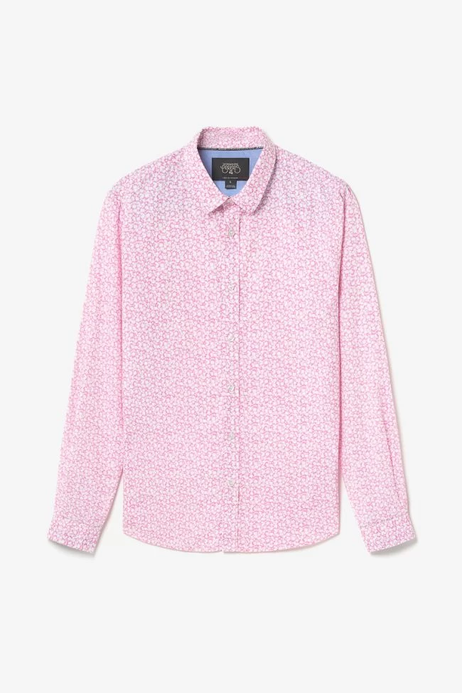 Cette chemise Brotel rose à motif fleuri blanc vous donnera un style casual et élégant avec sa fermeture à boutons ainsi que ses manches boutonnées avec, aux revers des poignets, un liseré personnalisé « Le Temps des Cerises »