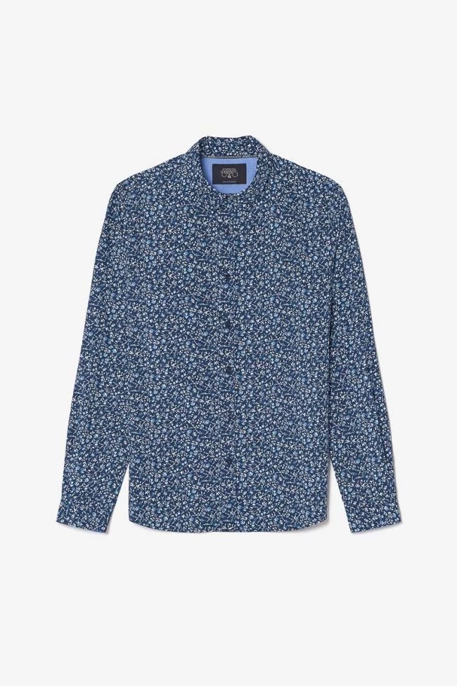 Cette chemise Nobel bleu marine vous donnera un look raffiné et élégant avec son motif fleuri bleu et blanc, ses boutons nacrés bleus et ses revers aux poignets avec liseré personnalisé « Le Temps des Cerises » et empiècement contrastant. Pour le détail final, un mini liseré drapeau bleu, blanc, rouge dans le dos.