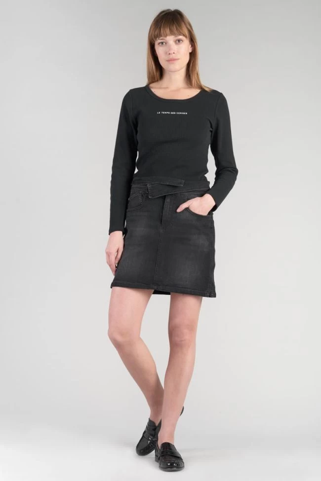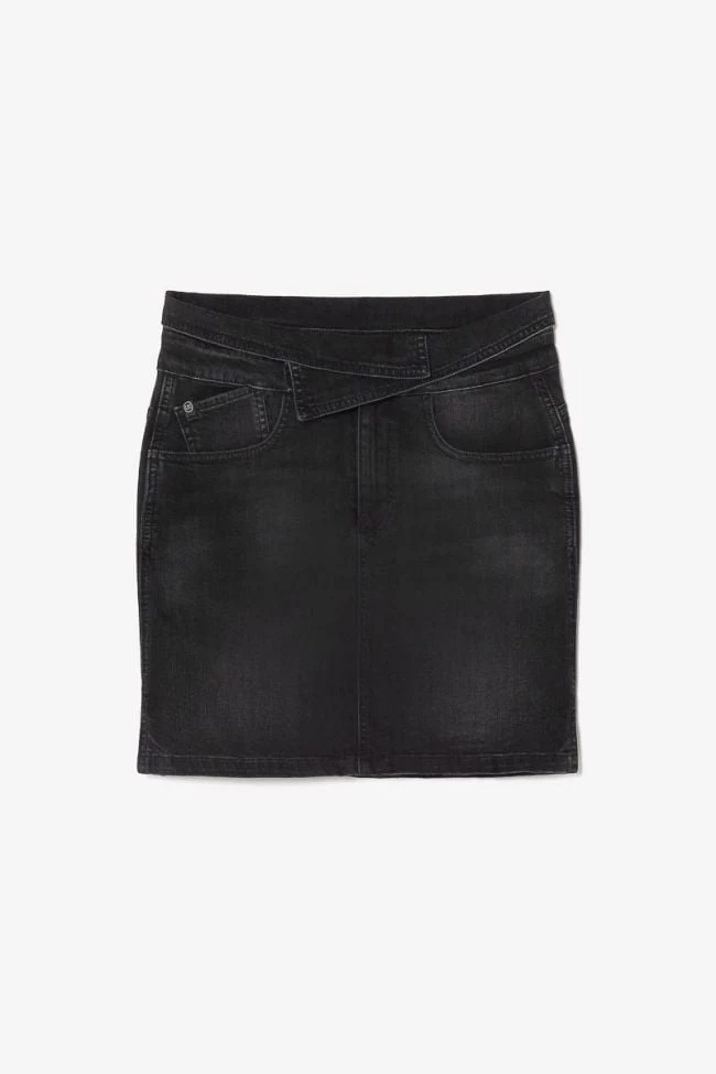 Cette jupe courte Callas est idéale pour être casual avec sa coupe droite et son jeans noir légèrement délavé tout en restant tendance grâce à sa taille habillée de revers.