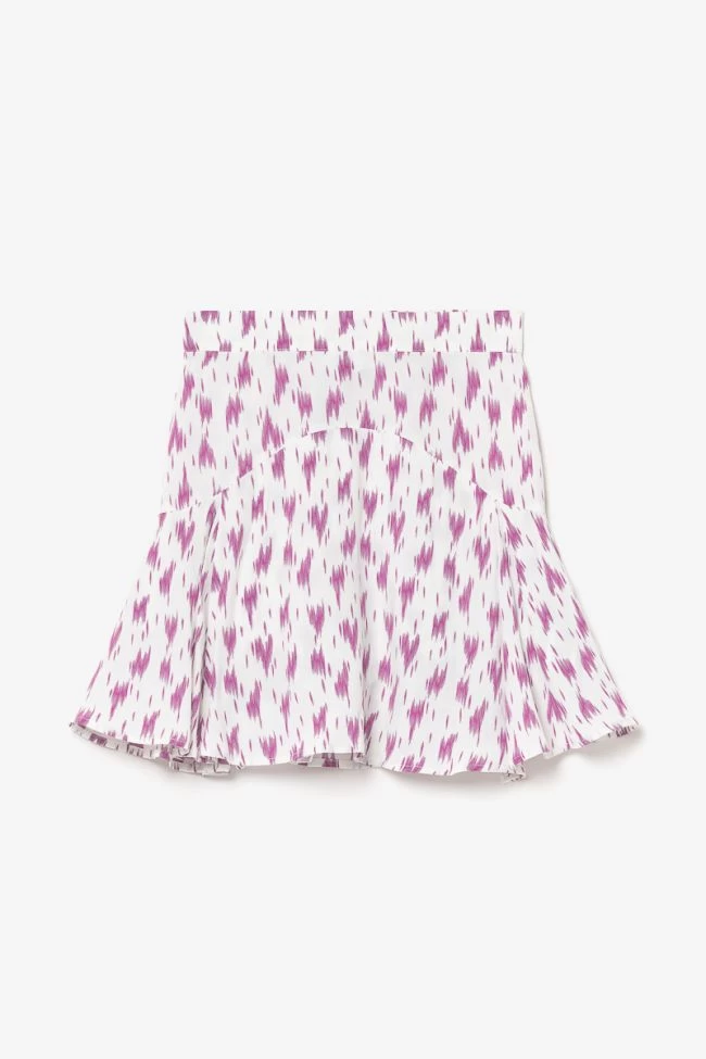 Jupe short Marligi à motif violet très girly avec taille élastiquée au dos et tissu fluide pour plus de confort.