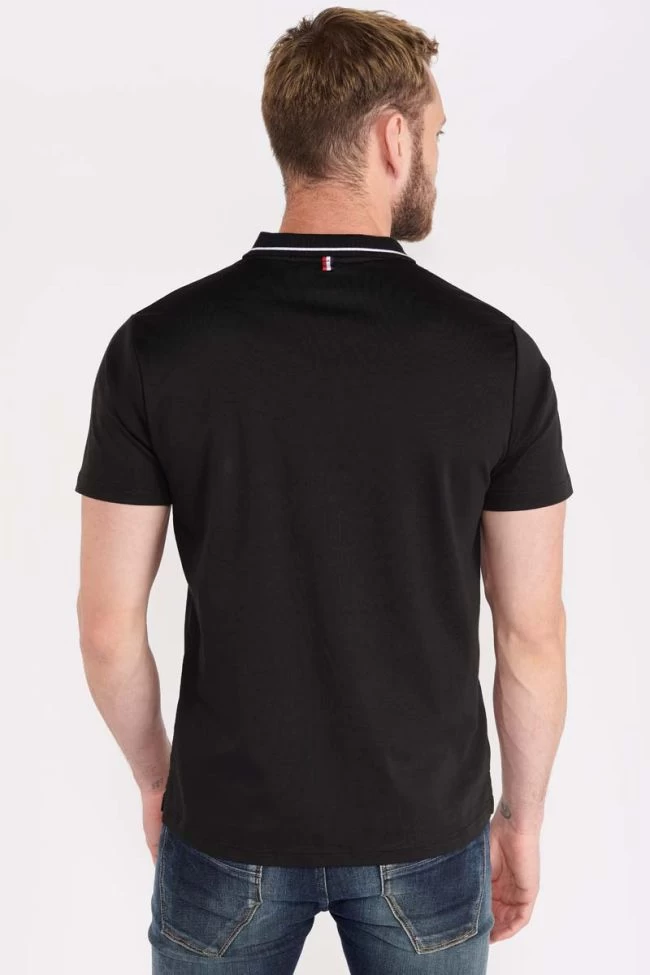 Ce polo Aron noir au toucher doux allie élégance et tendance avec ses détails comme son col avec liseré blanc et son ouverture avec liserés colorés et boutons personnalisés « Le Temps des Cerises ». Pour le détail, un écusson personnalisé « Le Temps des Cerises » sur la poitrine et un mini liseré drapeau bleu, blanc, rouge au dos au niveau du col.