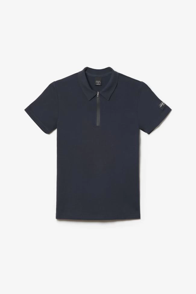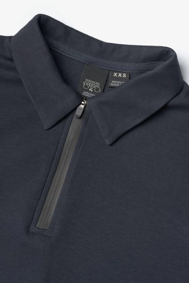Polo Itorabo bleu nuit à la matière confortable agréable à porter et aux détails tendance comme son ouverture avec fermeture zippée waterproof noire contrastée au niveau de l’encolure et son écusson sur la manche gauche.