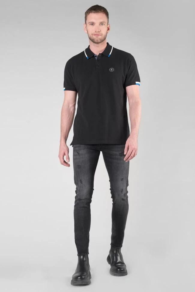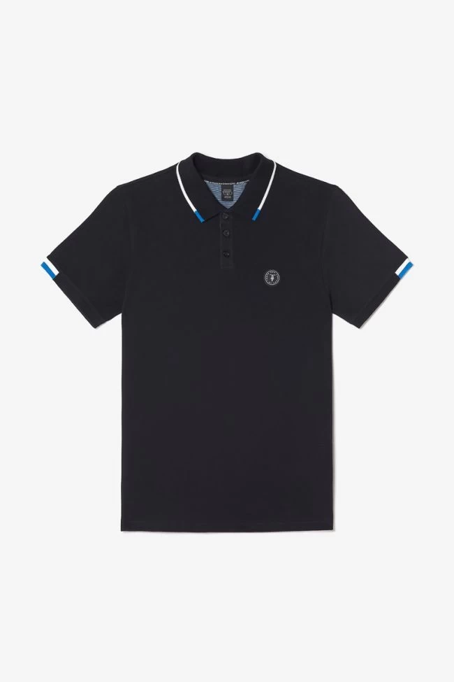 Ce polo Monk est élégant avec son tissu noir mais reste pour autant tendance avec sa pate de boutonnage contrastée ainsi que son col et ses bords de manches habillés de liserés blanc et bleu qui apportent du contraste et du style à la pièce. Enfin, pour le détail, un écusson Le Temps des Cerises sur la poitrine et un liseré bleu, blanc, rouge au dos au niveau du col. Son tissu doux est agréable à porter.