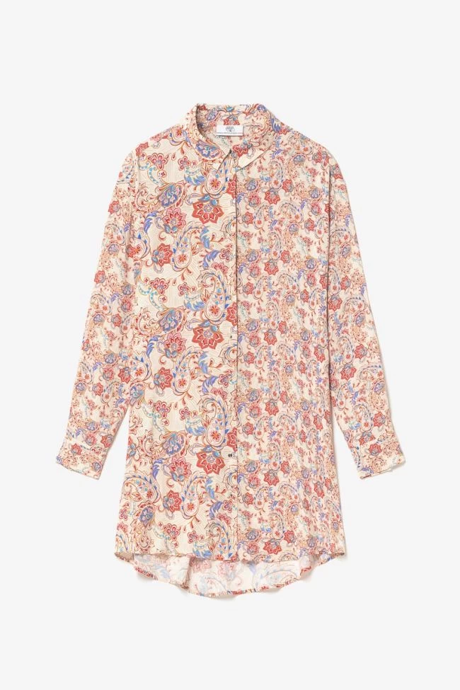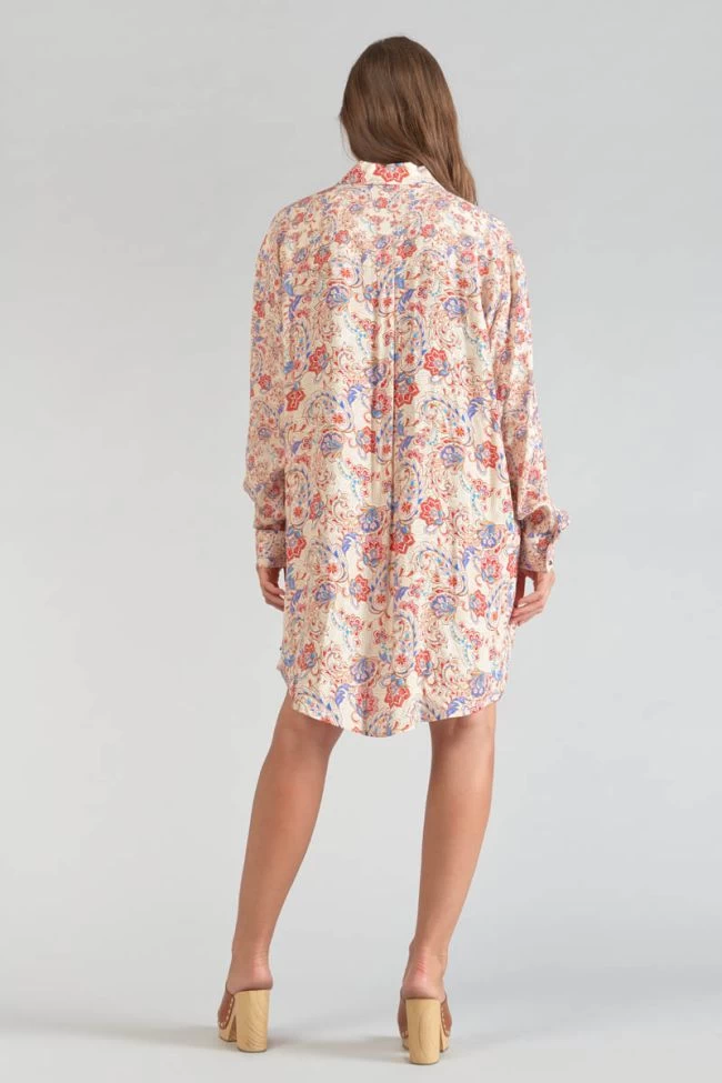 Cette robe-chemise Tita est très tendance avec son motif cachemire coloré et son mix entre gros imprimé à droite et petit à gauche. De petits boutons argentés permettent de fermer la robe et les poignets. Enfin, pour plus de confort, le tissu fluide et léger est agréable à porter.