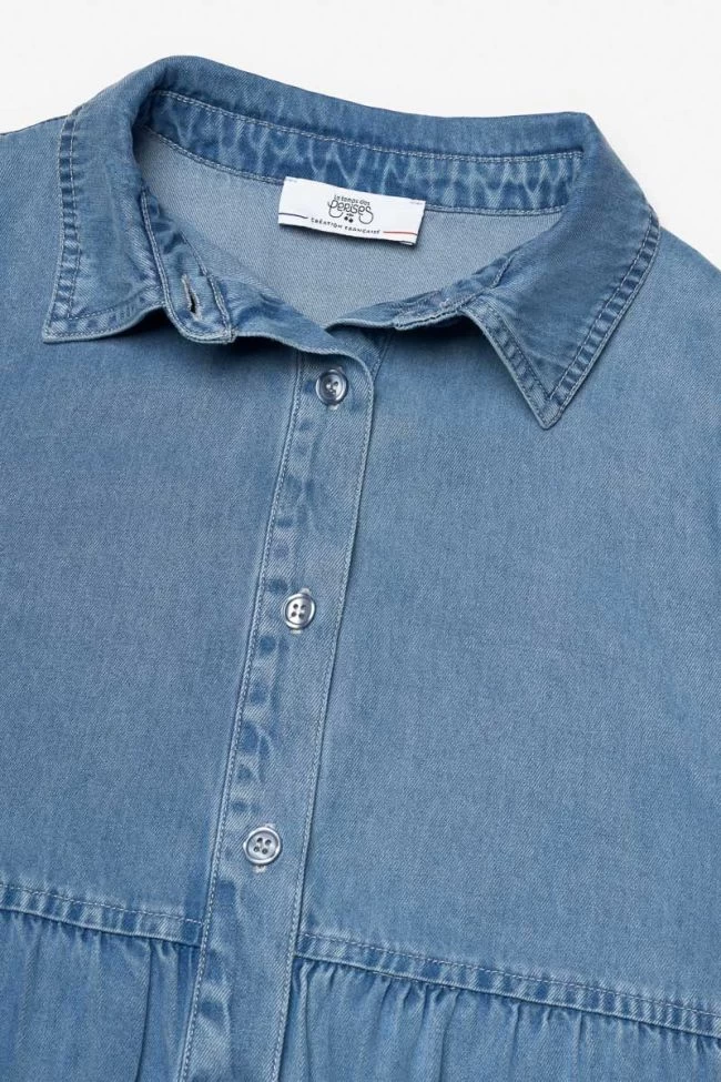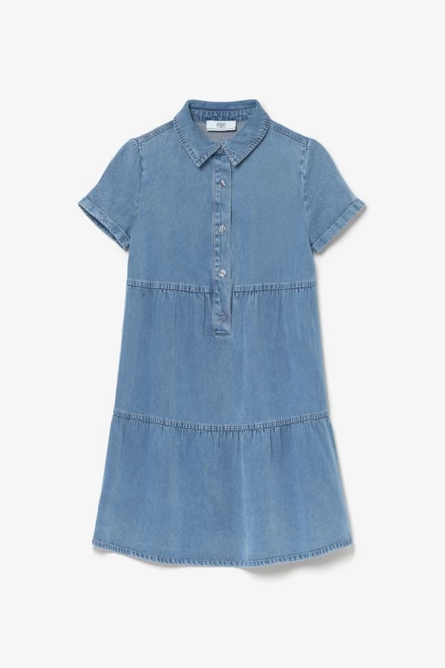 Jolie robe Sunogi idéale pour l’été avec son tencel bleu denim léger. Son col chemise avec boutons nacrés bleu en guise de fermeture apporte du style à la pièce.