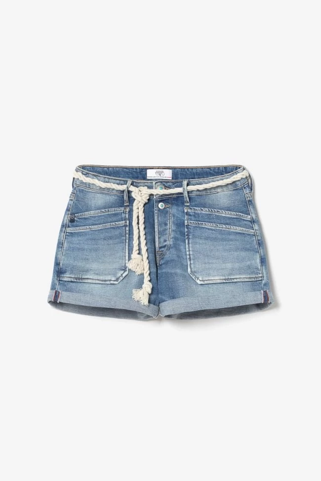 Ce short Madrague vous donnera un look tendance avec son jeans bleu délavé, ses doubles poches carrées plaquées à l’avant et son double boutonnage visible avec boutons bijoux turquoise. Pour le détail, la surpiqûre emblématique de la marque qui habille les poches arrière et une poche arrière retournée.