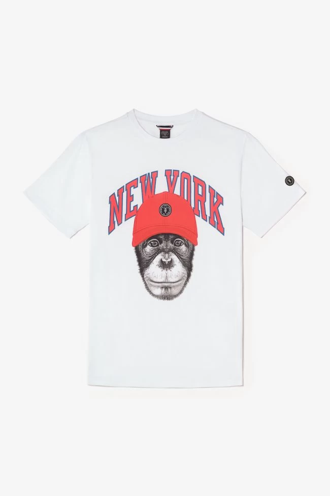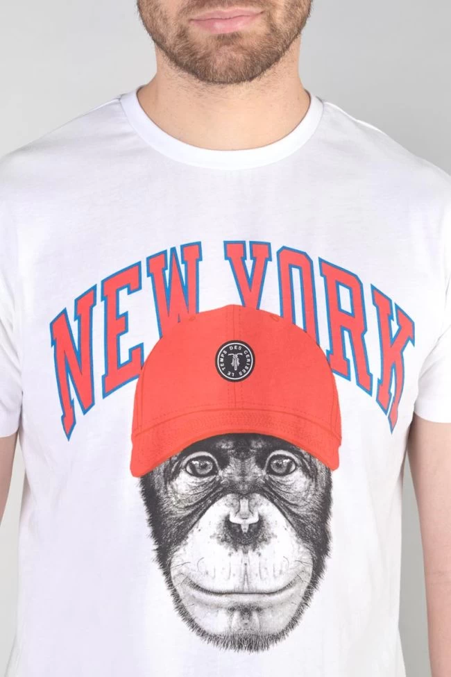 Ce t-shirt Hira blanc a un look casual avec son imprimé fantaisie dans les tons de rouge et bleu. Pour le détail, un écusson Le Temps des Cerises sur la manche gauche.