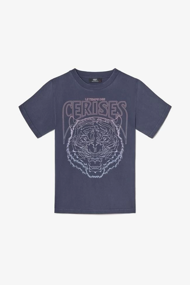 T-shirt Hoppergi au style tendance avec sa coupe loose, son tissu à l’effet délavé et son imprimé tête de tigre personnalisé Le Temps des Cerises dans un dégradé violet rose.