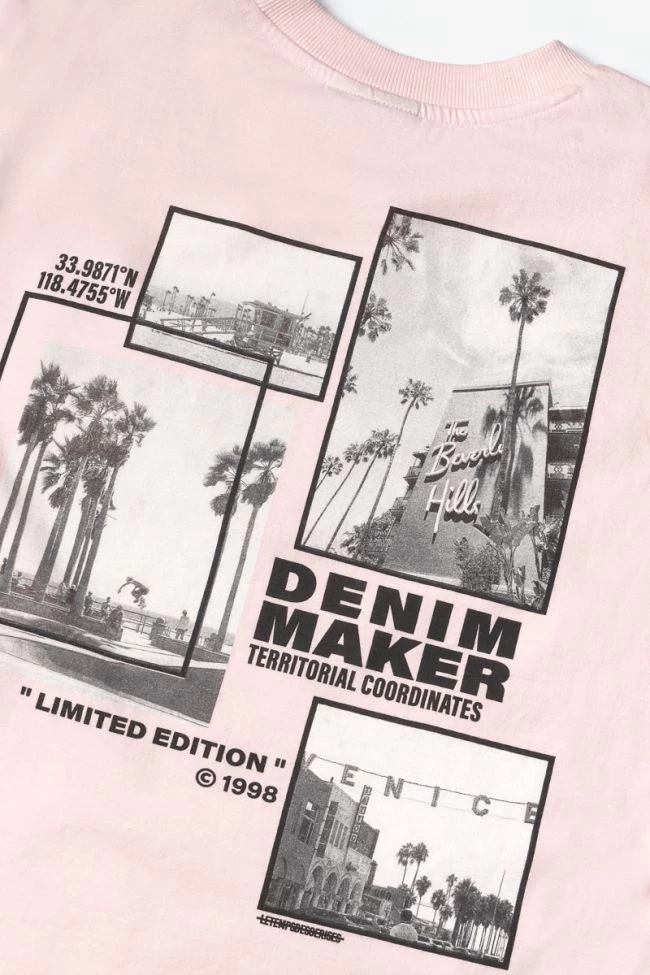 T-shirt Karibo au look urbain tendance avec sa couleur rose, sa poche poitrine et ses imprimés à l’avant et au dos.