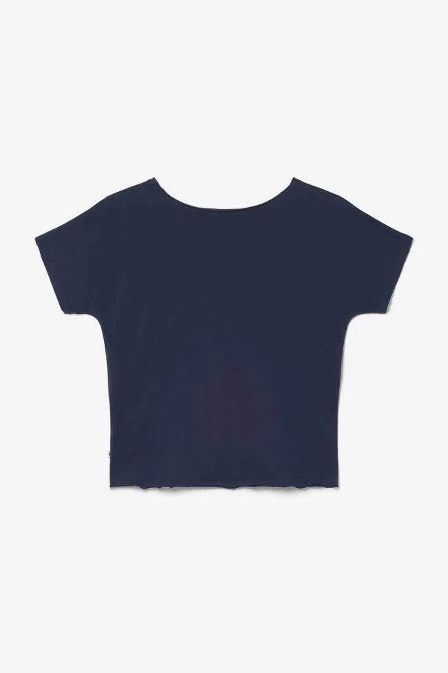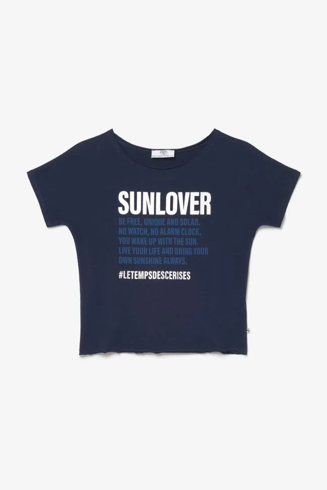 T-shirt Maurigi bleu nuit à la coupe loose large et aux bords francs pour un style tendance et un imprimé argenté et bleu pour un côté casual très girly.
