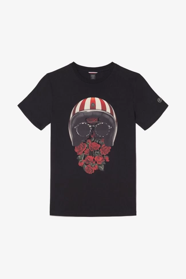 Ce t-shirt Mura noir a un look casual avec son imprimé fantaisie floral et son écusson Le Temps des Cerises sur la manche gauche.