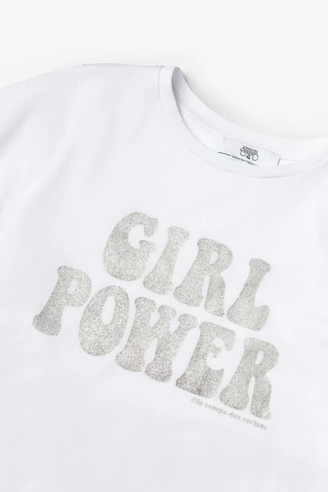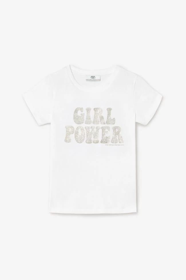 T-shirt Powergi au look casual avec sa coupe et girly avec son imprimé à paillettes argentées.