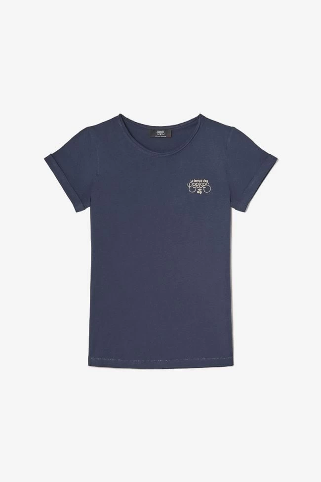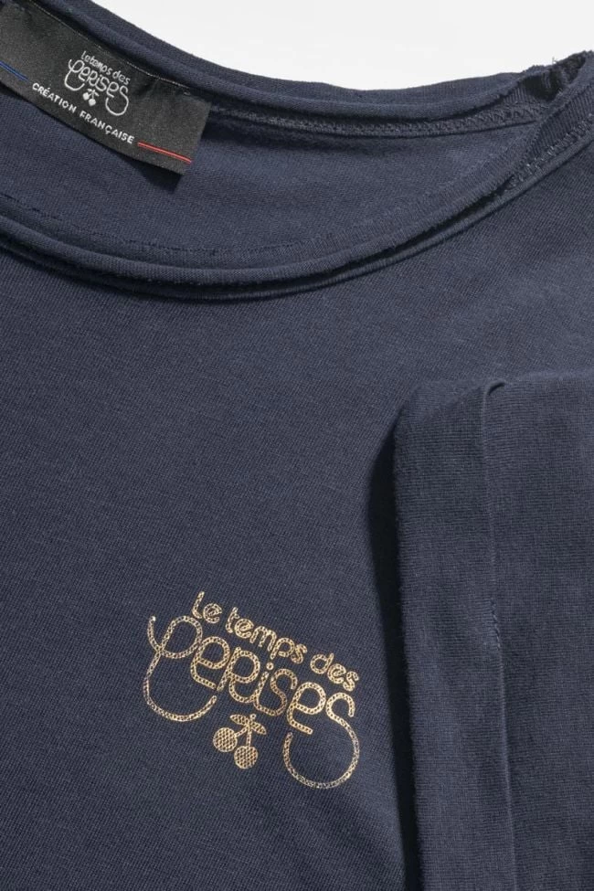 T-shirt Smalltramegi bleu nuit à avoir dans son dressing avec son logo « Le Temps des Cerises » doré, son col à bord franc et ses manches à revers cousus.