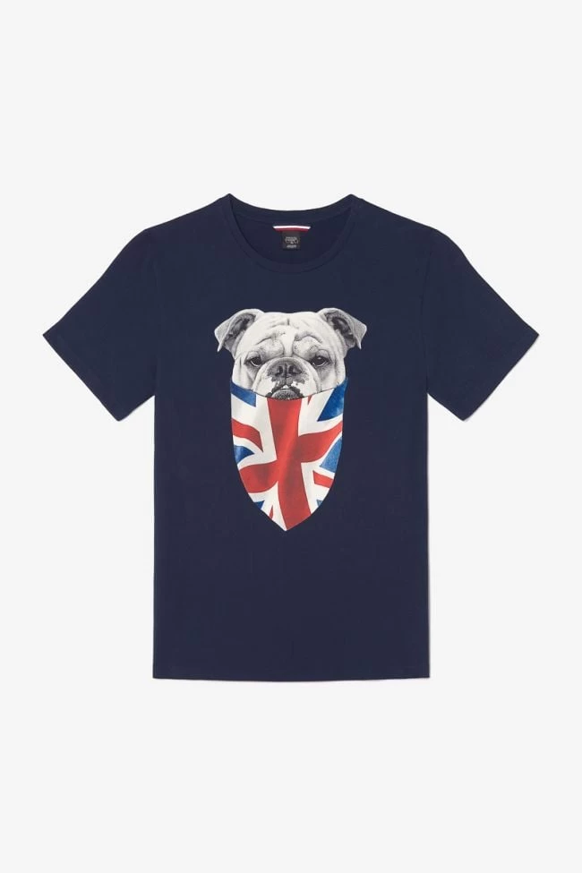Ce t-shirt Vagrav bleu nuit a un look casual avec son imprimé fantaisie aux couleurs du drapeau anglais.
