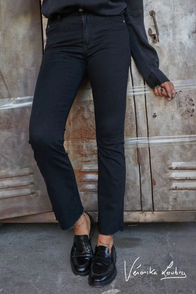 Ce jeans à la coupe trompette est la nouveauté très tendance de cette collab qui mettra en valeur votre silhouette ! Resserré au niveau des hanches et des genoux, ses bas de jambes évasés au niveau des chevilles apportent le style à la pièce. Enfin son jeans noir apportera la touche élégante à la pièce.